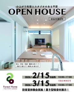 イベント告知👇👇 小上がりの和室とスタジオ(防音室)のある平屋です。 性能の良い家の暮らし心地を実感していただけます。 ◼︎防音室 ◼︎小上がりの和室 ◼︎おしゃれなオープンキッチン ◼︎最新✨パナソニックフロントオープ […]
