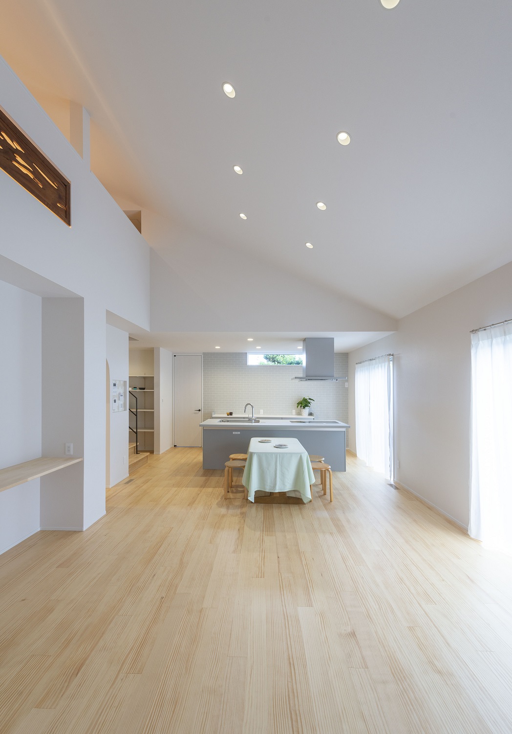 勾配天井で広々としたリビングルームです。