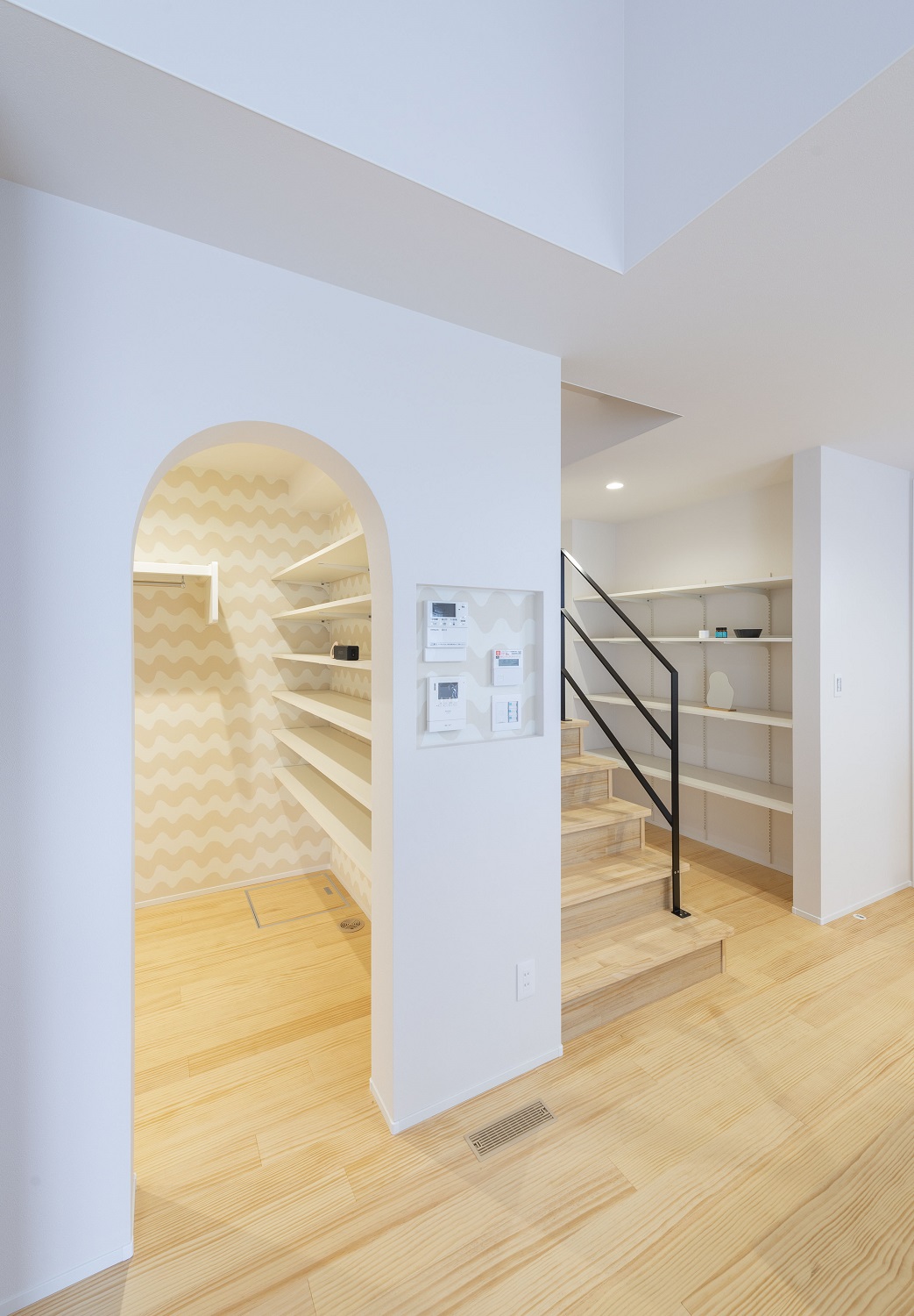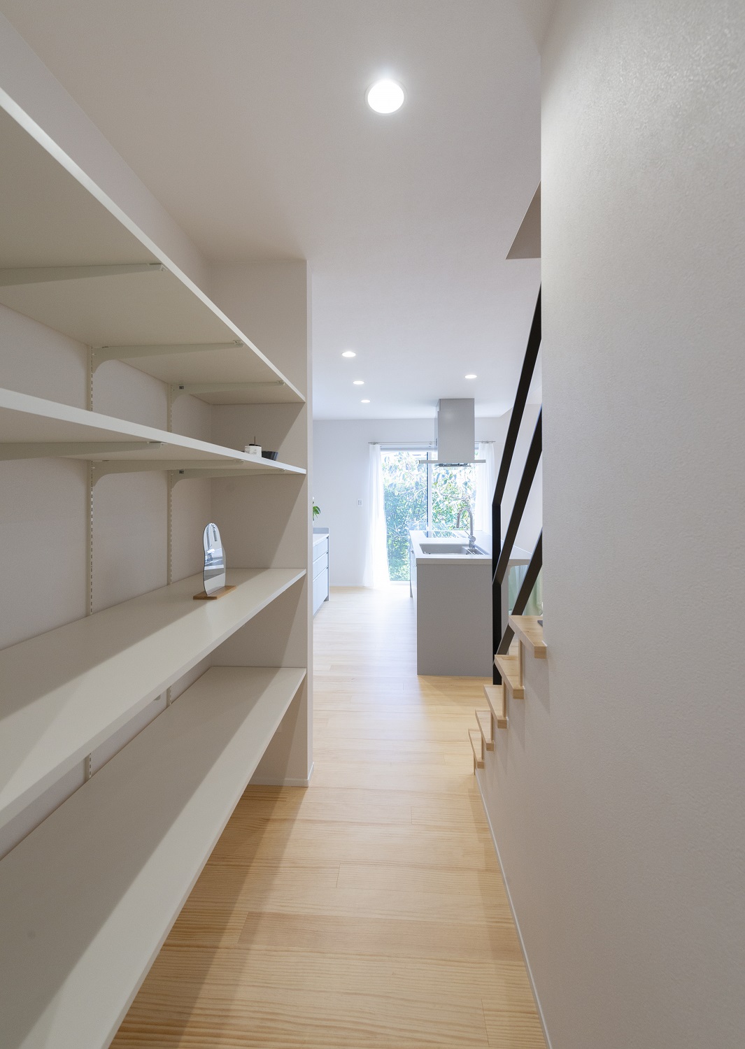 廊下を使った、収納スペースも便利です。